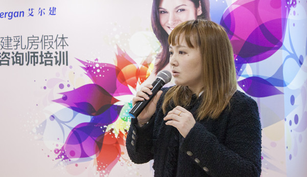 本次会议的特邀授课专家郁培颖为结合假体隆胸实际情况为现场精英咨询师分享了良好的客户管理办法和高质量的管理建议。她表示:“艾尔建医学美容事业部的追求就是创造的产品给消费者带去自信和魅力,就像娜琦丽的品牌形象——莲花一般,亭亭玉立,优雅绽放。”她说希望通过这次培训,能为更多的美胸顾客带来更好的塑美体验。