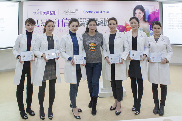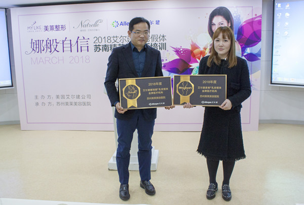3月6日,在2018美莱女神节前夕,由艾尔建(Allergan)中国医疗美容事业部主办,苏州美莱美容医院承办的《2018艾尔建乳房假体苏南精英咨询师培训会》成功举办。在经过了半天的培训学习后,来自苏南地区多所大型整形美容机构的40多位精英咨询师,收获颇丰。此次培训会的目的是推进苏南地区整形行业对假体隆胸的认识,医生和咨询师共同探讨胸部整形美容知识。苏州美莱总经理黄金树、美国艾尔建公司特邀专家郁培颖、公司代表Vivian等共同出席。